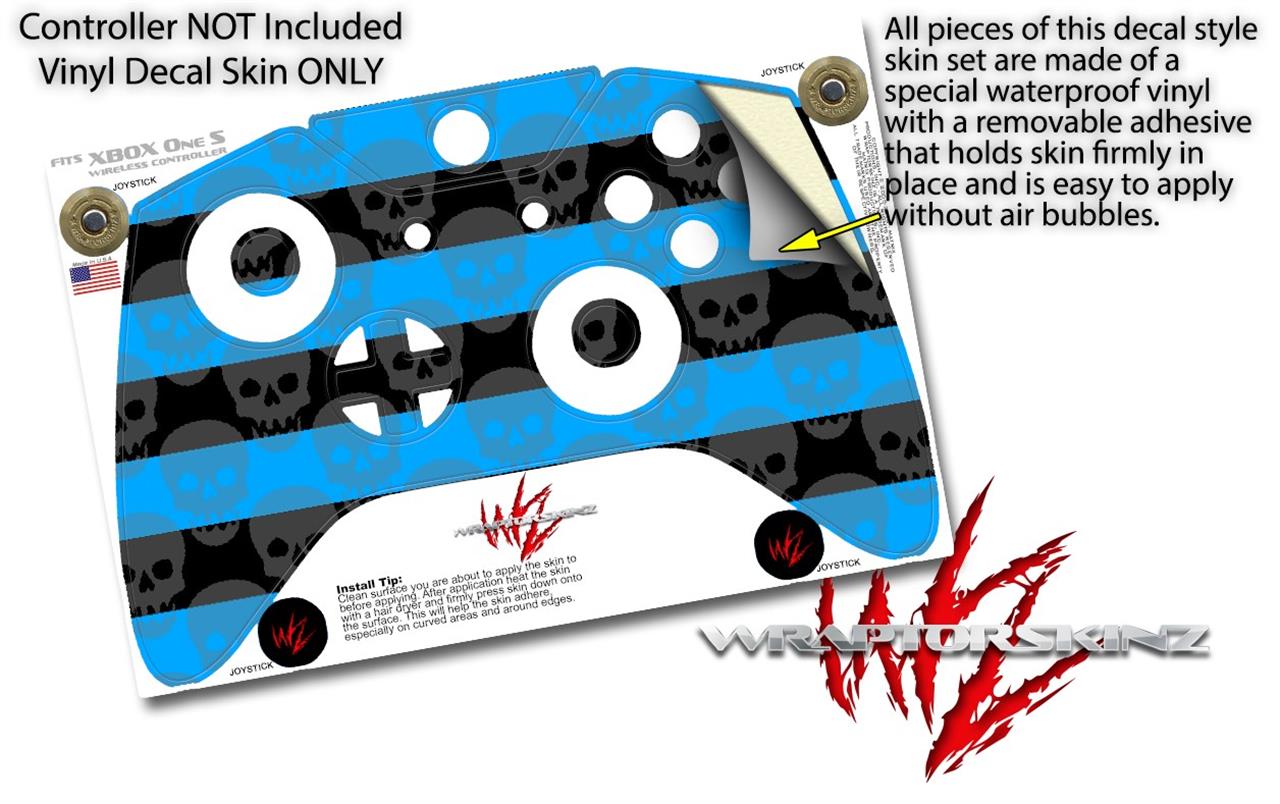 WraptorSkinz Decal Skin Wrap Set works with 2016 and newer XBOX One S / X Controller Skull Stripes Blue (CONTROLLER NOT INCLUDED)