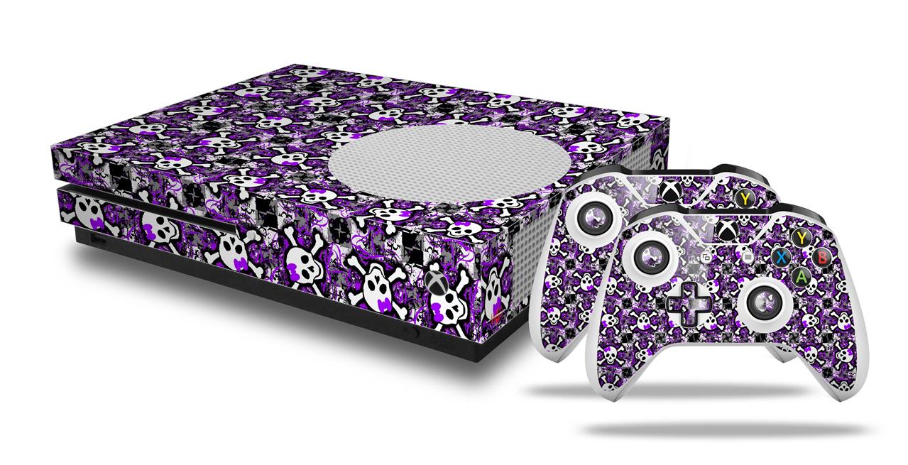 WraptorSkinz Decal Skin Wrap Set works with 2016 and newer XBOX One S Console and 2 Controllers Splatter Girly Skull Purple