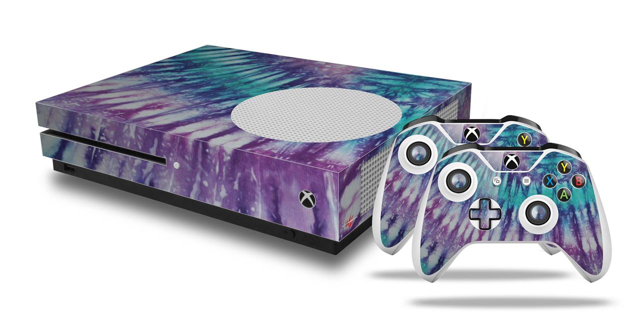WraptorSkinz Decal Skin Wrap Set works with 2016 and newer XBOX One S Console and 2 Controllers Tie Dye Purple Stripes