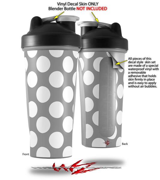 Decal Style Skin Wrap works with Blender Bottle 28oz Kearas Polka Dots Whtie On Gray (BOTTLE NOT INCLUDED)