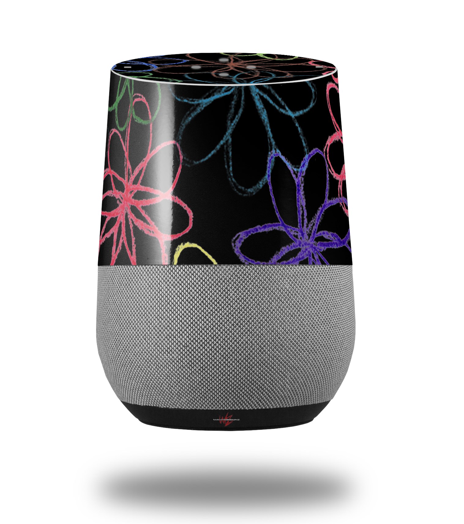 Decal Style Skin Wrap for Google Home Original - Kearas Flowers on Black (GOOGLE HOME NOT INCLUDED)