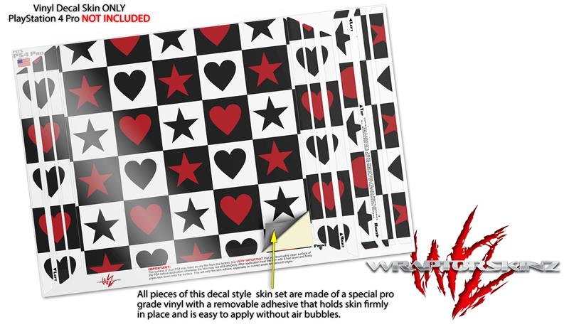 Vinyl Decal Skin Wrap compatible with Sony PlayStation 4 Pro Console Hearts and Stars Red (PS4 NOT INCLUDED)