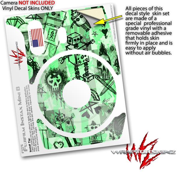 WraptorSkinz Skin Decal Wrap compatible with Fujifilm Mini 8 Camera Scene Kid Sketches Green (CAMERA NOT INCLUDED)