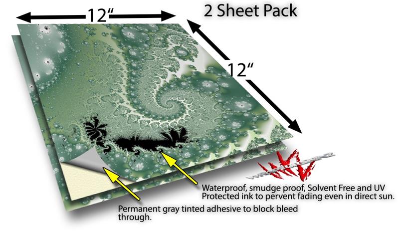 WraptoSkinz™ skin vinyl craft sheets are printed using superb photo quality designs and vibrant colors printed with special UV Protected fade resistant inks that last even in direct sun for years. Unlike other brands our inks are NOT solvent based. WraptorSkinz are a manufactured from professional grade 3mill vinyl. These sheets are waterproof, the designs will not run or smear even if submerged in water.