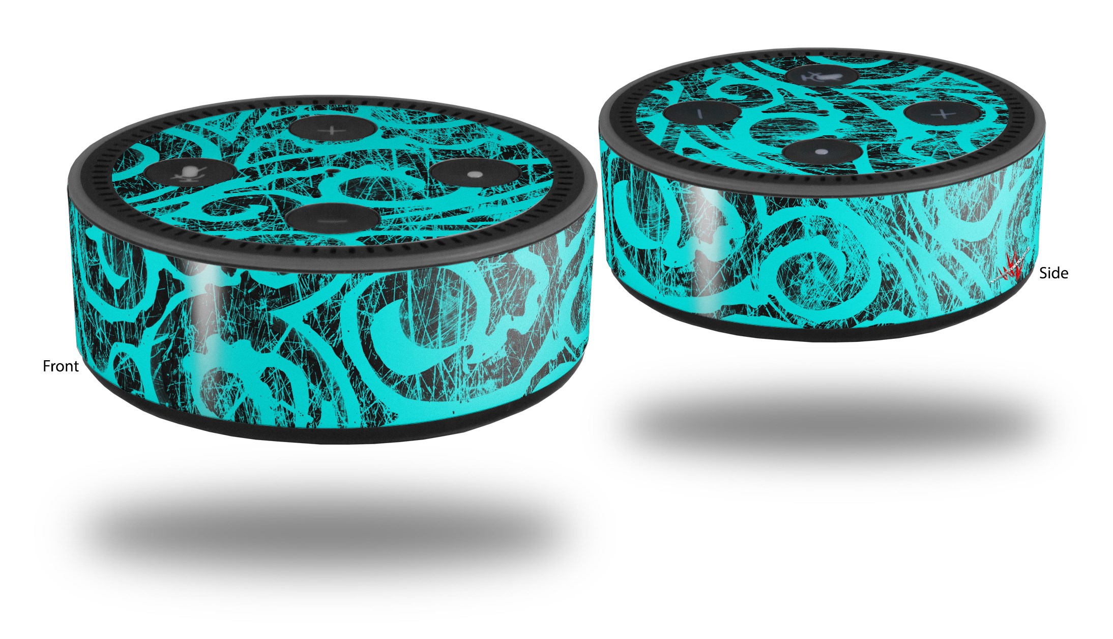Skin Wrap Decal Set 2 Pack for Amazon Echo Dot 2 - Folder Doodles Neon Teal (2nd Generation ONLY - Echo NOT INCLUDED)