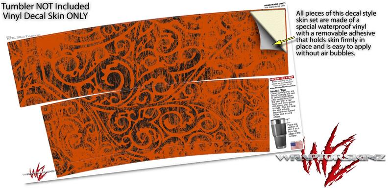 WraptorSkinz Skin Wrap compatible with RTIC 30oz ORIGINAL 2017 AND OLDER Tumblers Folder Doodles Burnt Orange (TUMBLER NOT INCLUDED)