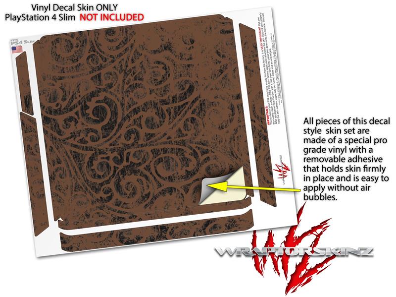 Vinyl Decal Skin Wrap compatible with Sony PlayStation 4 Slim Console Folder Doodles Chocolate Brown (PS4 NOT INCLUDED)