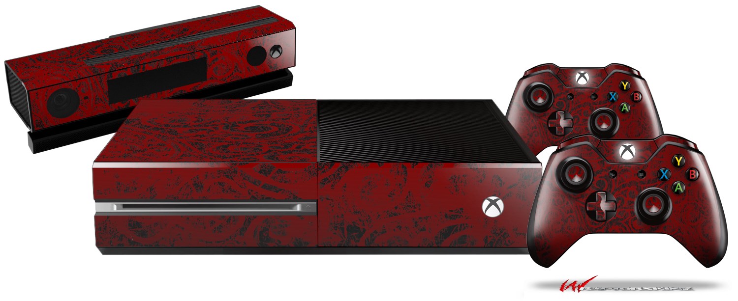 Folder Doodles Red Dark - Holiday Bundle Decal Style Skin fits XBOX One Console Original, Kinect and 2 Controllers (XBOX SYSTEM NOT INCLUDED)
