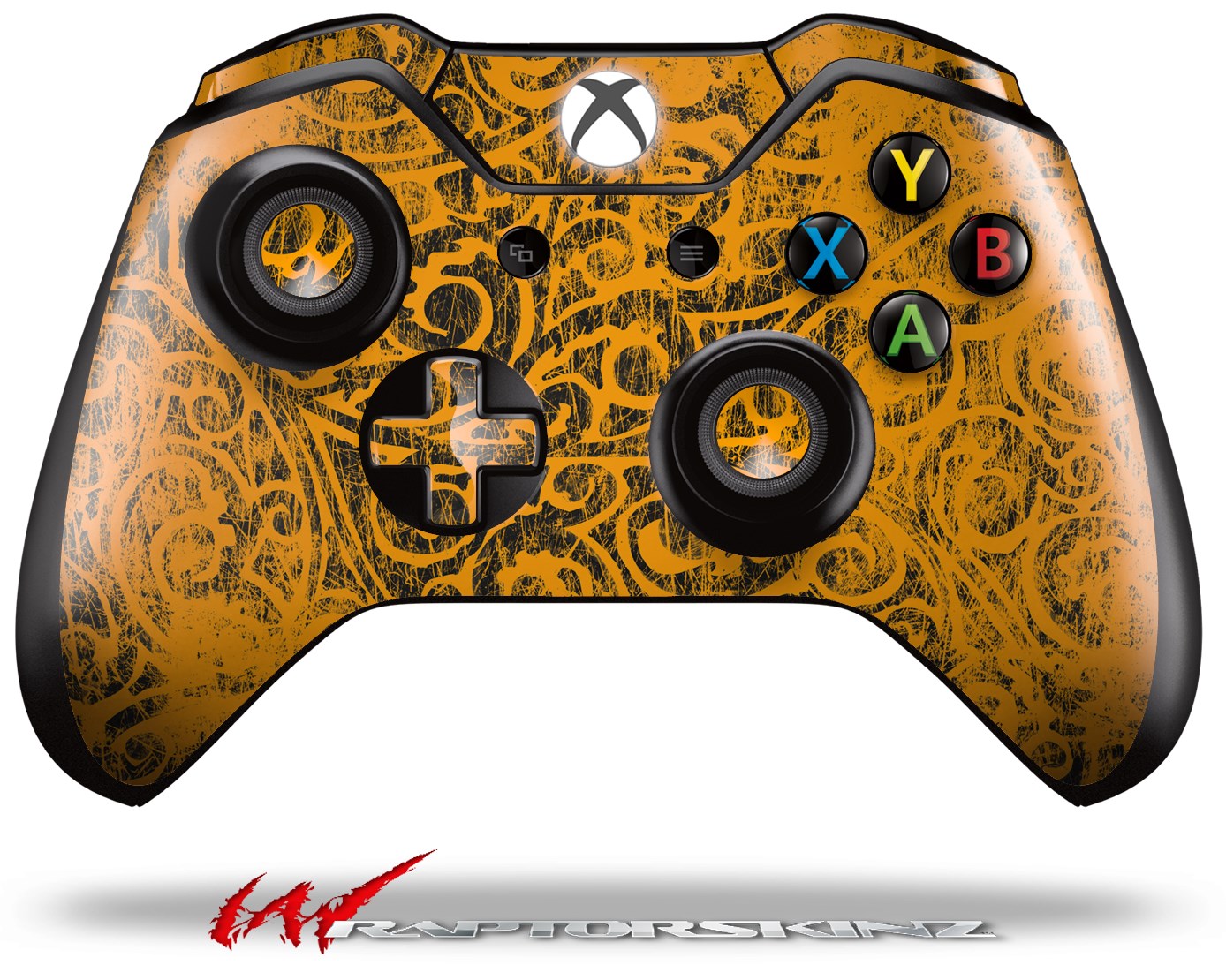 Decal Skin Wrap fits Microsoft XBOX One Wireless Controller Folder Doodles Orange