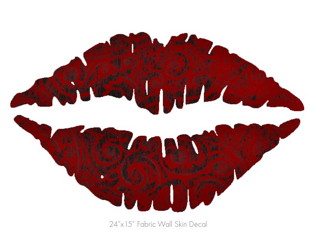 Folder Doodles Red Dark - Kissing Lips Fabric Wall Skin Decal measures 24x15 inches
