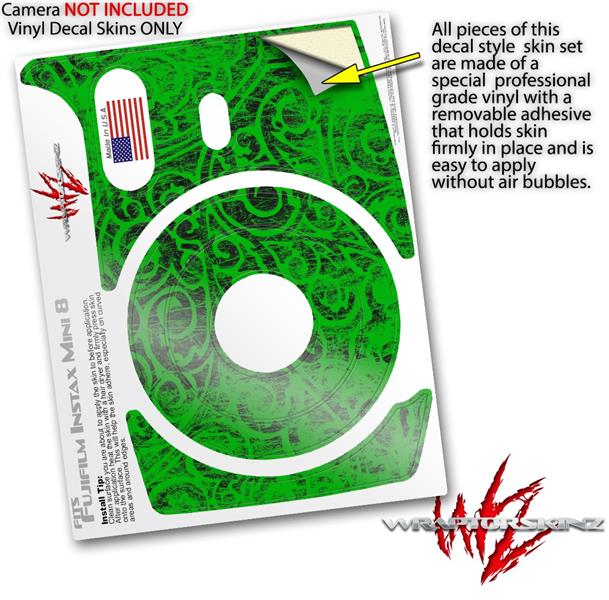 WraptorSkinz Skin Decal Wrap compatible with Fujifilm Mini 8 Camera Folder Doodles Green (CAMERA NOT INCLUDED)