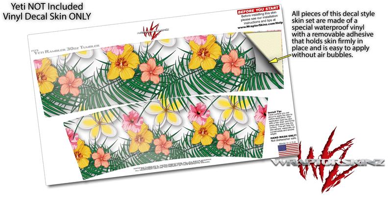 Skin Decal Wrap for Yeti Tumbler Rambler 30 oz Beach Flowers 02 White (TUMBLER NOT INCLUDED)