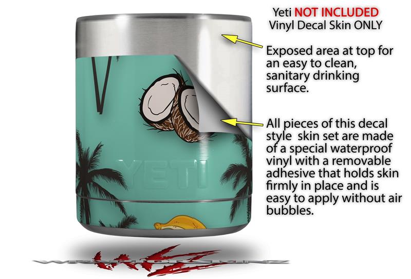 Skin Decal Wrap for Yeti Rambler Lowball - Coconuts Palm Trees and Bananas Seafoam Green
