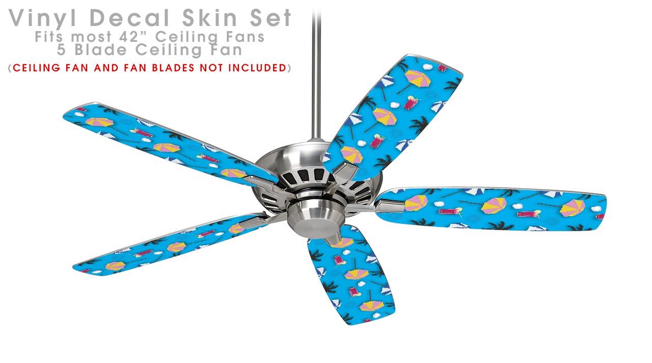 Beach Party Umbrellas Blue Medium - Ceiling Fan Skin Kit fits most 42 inch fans (FAN and BLADES SOLD SEPARATELY)