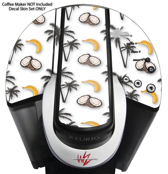 Decal Style Vinyl Skin compatible with Keurig K40 Elite Coffee Makers Coconuts Palm Trees and Bananas White (KEURIG NOT INCLUDED)