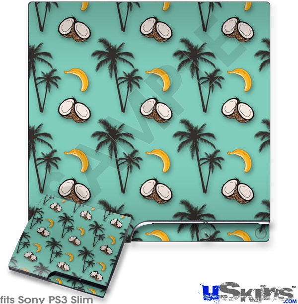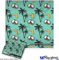 Decal Skin compatible with Sony PS3 Slim Coconuts Palm Trees and Bananas Seafoam Green