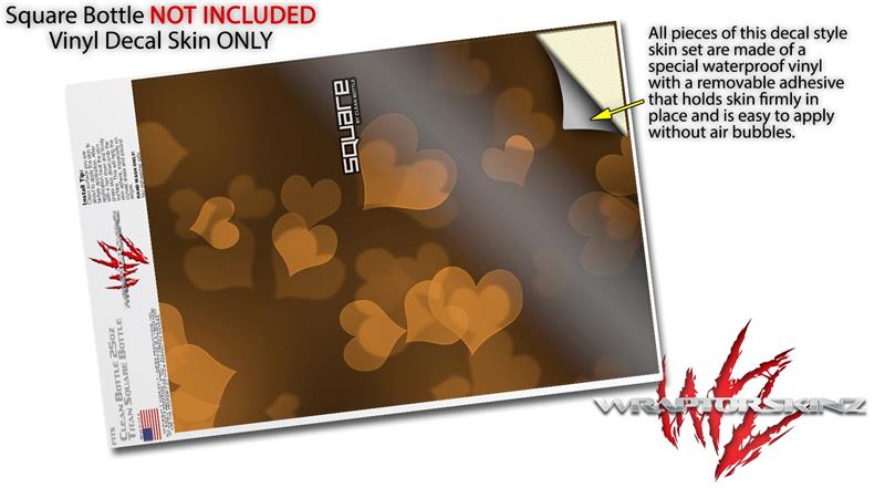 Skin Decal Wrap for Clean Bottle Square Titan Plastic 25oz Bokeh Hearts Orange (BOTTLE NOT INCLUDED)