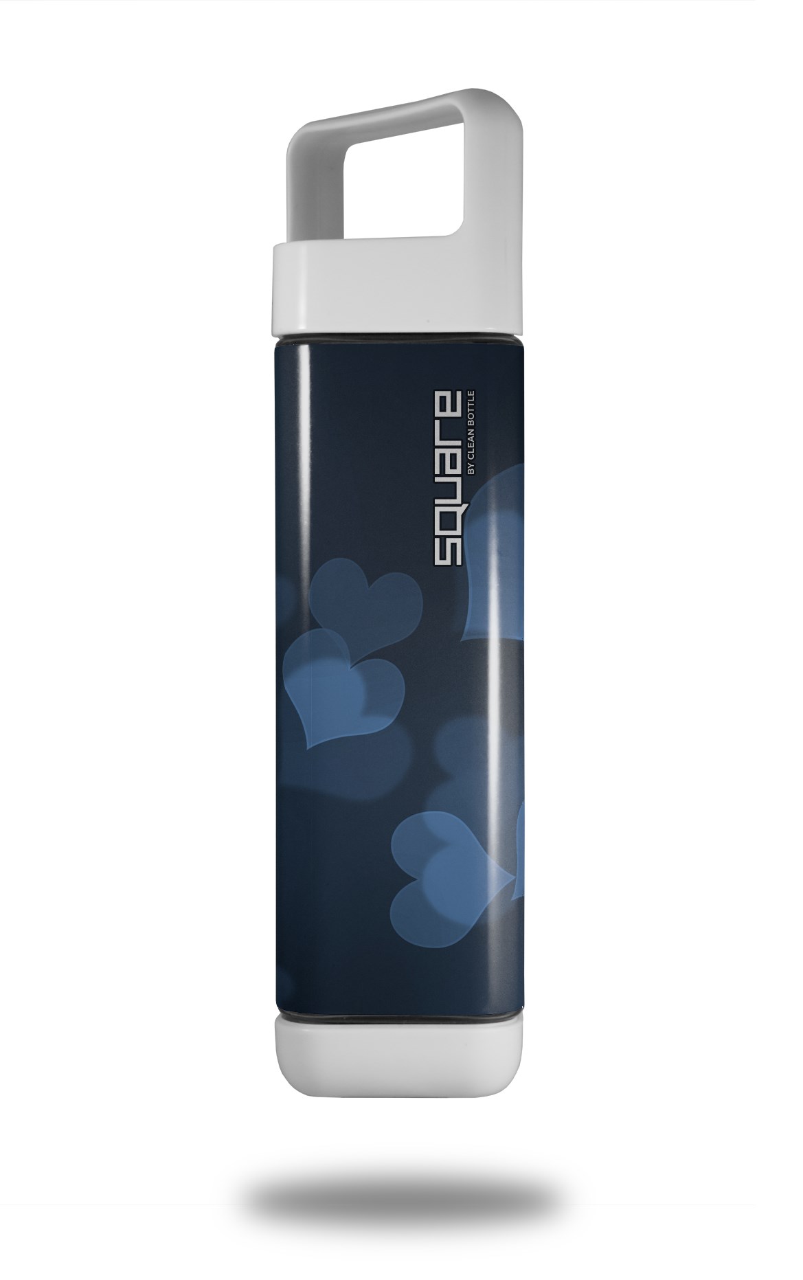 Skin Decal Wrap for Clean Bottle Square Titan Plastic 25oz Bokeh Hearts Blue (BOTTLE NOT INCLUDED)