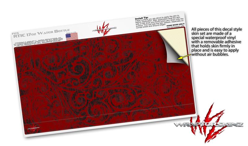 Skin Decal Wrap for RTIC Water Bottle 17oz Folder Doodles Red Dark (BOTTLE NOT INCLUDED)