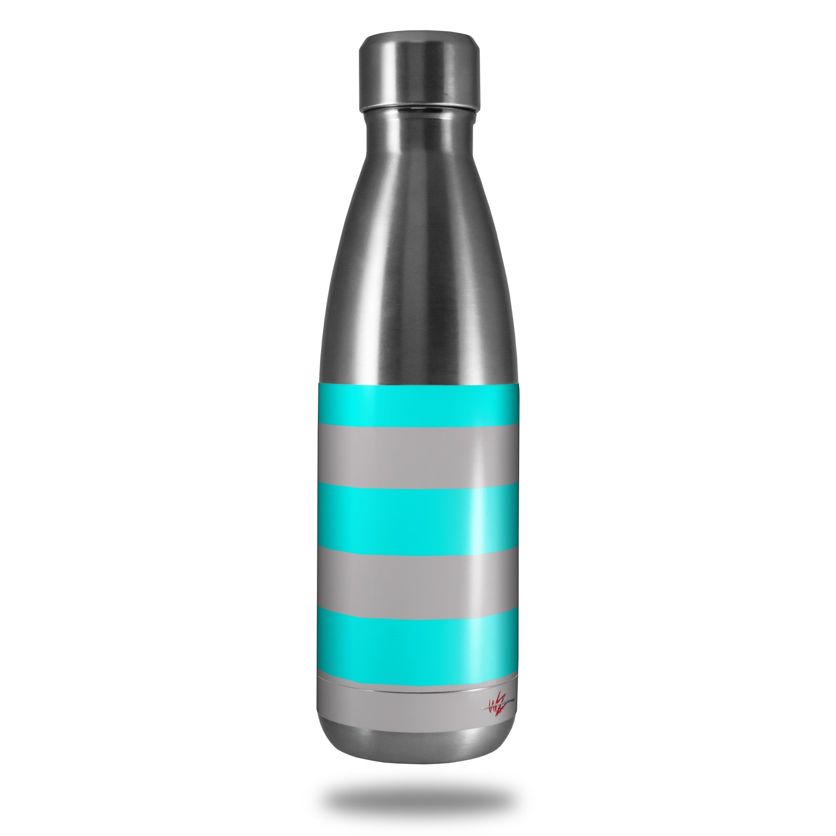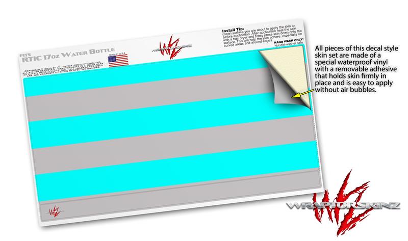 Skin Decal Wrap for RTIC Water Bottle 17oz Psycho Stripes Neon Teal and Gray (BOTTLE NOT INCLUDED)