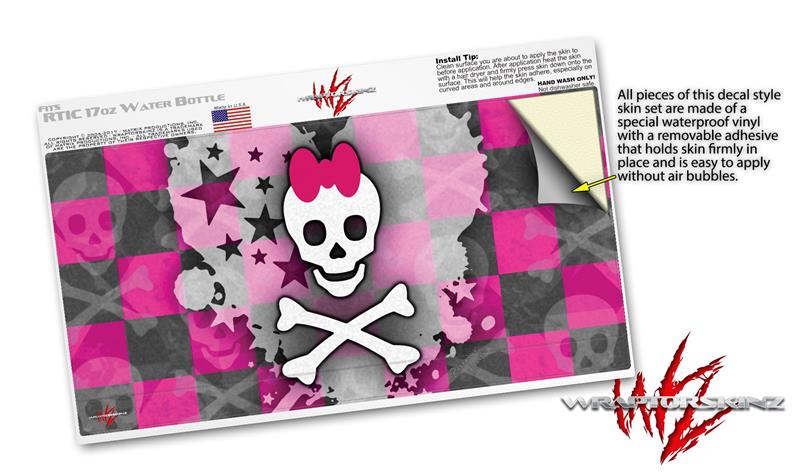 Skin Decal Wrap for RTIC Water Bottle 17oz Princess Skull Heart Pink (BOTTLE NOT INCLUDED)