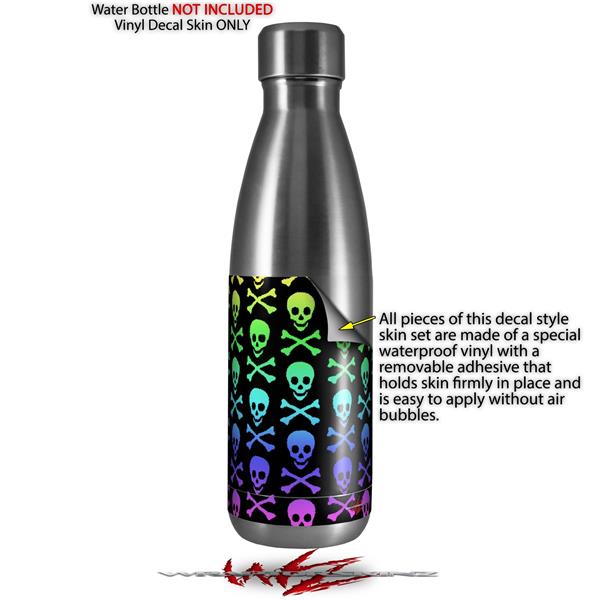 Skin Decal Wrap for RTIC Water Bottle 17oz Skull and Crossbones Rainbow (BOTTLE NOT INCLUDED)
