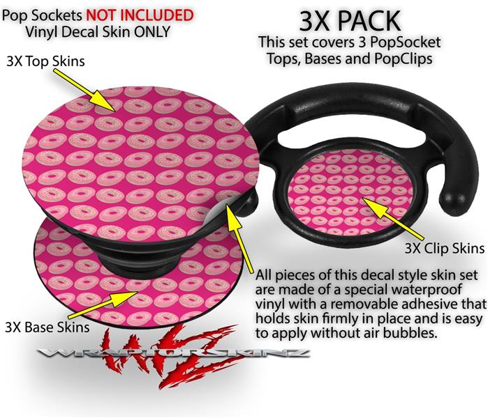 Decal Style Vinyl Skin Wrap 3 Pack for PopSockets Donuts Hot Pink Fuchsia (POPSOCKET NOT INCLUDED)